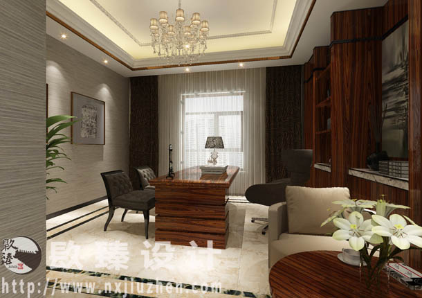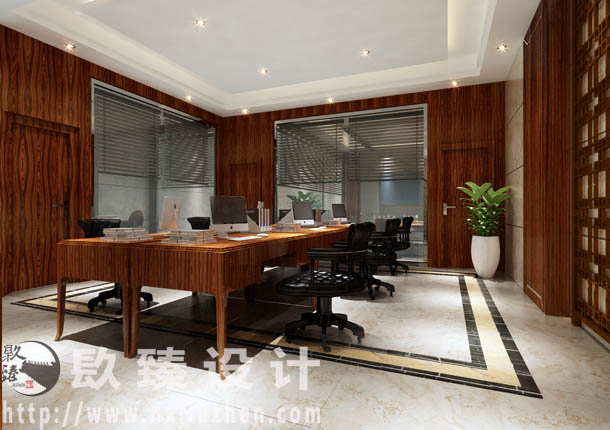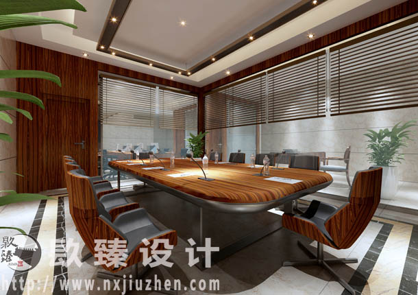 總經(jīng)理辦公室,簡單的石膏線吊頂,水晶燈,烤漆木桌子,黑色皮椅,辦公桌后還有一個書柜,在這樣一個狹小的空間里,實(shí)現(xiàn)了這么多的功能,設(shè)計(jì)師對于每一個面積的使用都沒有浪費(fèi),做到了空間的合理利用。會議室使用烤漆色辦公桌搭配白色的地板顏色,既莊重又不是沉穩(wěn)。