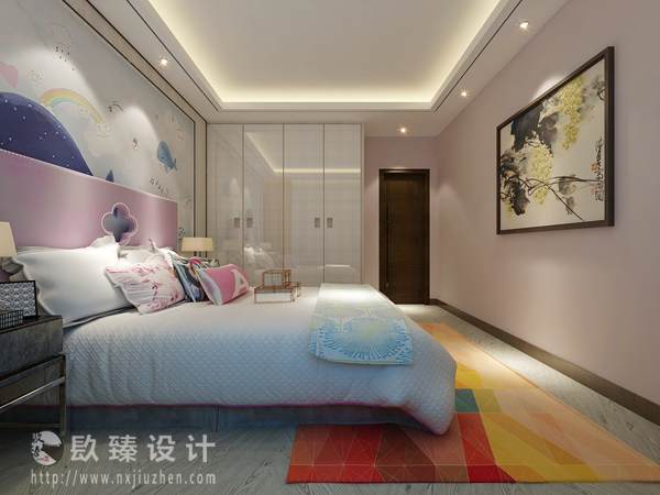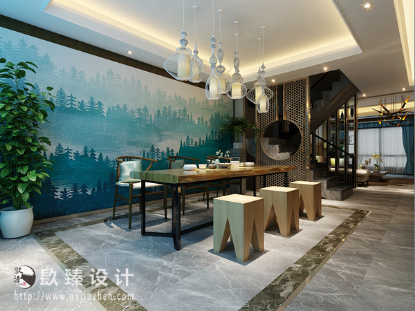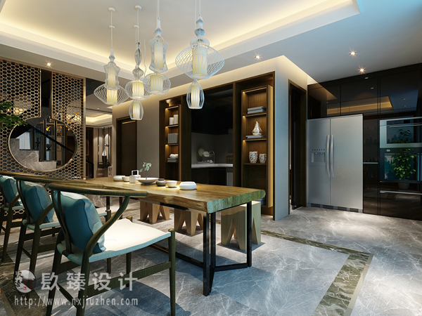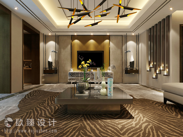 本案特點是將現(xiàn)代元素與傳統(tǒng)元素相互結(jié)合的形式而產(chǎn)生的,同時以現(xiàn)代人的觀點來體現(xiàn)出與傳統(tǒng)中國風(fēng)格不一樣的設(shè)計。同時新中式風(fēng)格大多數(shù)采用對稱性的設(shè)計,體現(xiàn)出一定的協(xié)調(diào)性。
