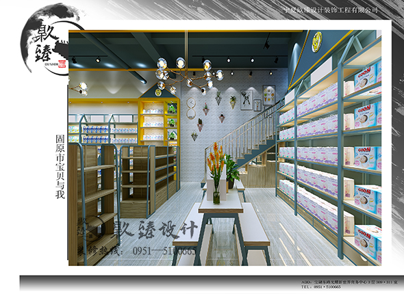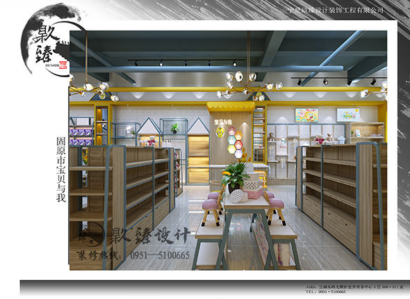 在銀川裝修公司镹臻裝飾設(shè)計(jì)里,一幫充滿活力,經(jīng)驗(yàn)豐富的團(tuán)隊(duì)總是能創(chuàng)造出一套套完美的方案,今天銀川裝修公司镹臻裝飾小編為大家?guī)淼氖且患覝剀,時(shí)尚的母嬰店設(shè)計(jì)案例,出自銀川裝飾公司镹臻裝飾設(shè)計(jì)資深設(shè)計(jì)師桂淑萍之手!