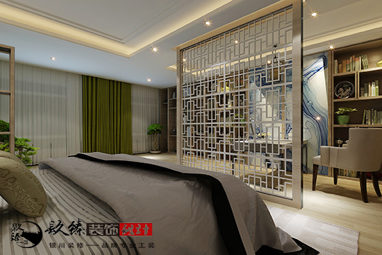 銀川裝修公司镹臻裝飾,書香四溢新中式別墅臥室裝修設(shè)計(jì)