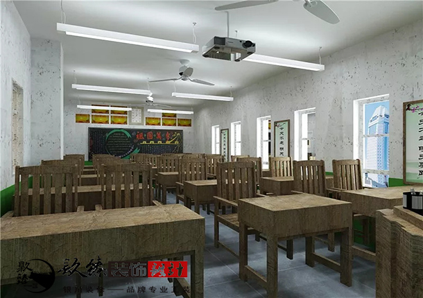 本案例教室內(nèi)突出一種懷舊之情,時(shí)刻提醒著不忘初心使我們牢記使命,十年育樹(shù),百年育人,雖然我們生活在衣食無(wú)憂的21世紀(jì),但是我們?nèi)匀徊荒芡浬弦淮鷥?yōu)秀學(xué)者們?yōu)槲覀兤D苦創(chuàng)造的美好。銀川裝修公司镹臻裝飾校友室設(shè)計(jì)的風(fēng)采墻向大家展示了該校嚴(yán)以律己的美好品德,樂(lè)學(xué)睿思,勤勉致知良好學(xué)風(fēng)。