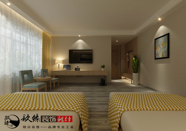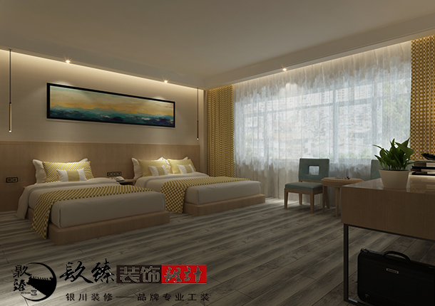 今天銀川裝修镹臻裝飾小編為大家?guī)淼木频臧咐龑儆诂F(xiàn)代簡約風(fēng),其裝修風(fēng)格更接近原始自然,墻面多以清新的綠色和黃色做搭配,再植入一些裝飾畫進(jìn)行配飾上面的搭配,簡單的基礎(chǔ)配色以及木質(zhì)材料最終打造將該酒店以極簡主義的形式展現(xiàn)出來,檸檬黃在簡約風(fēng)格中經(jīng)常被廣泛使用,這種顏色作為點(diǎn)綴的效果是非常好的,其活潑靚麗感為整個(gè)房間增添了潛移默化的跳動(dòng)感。