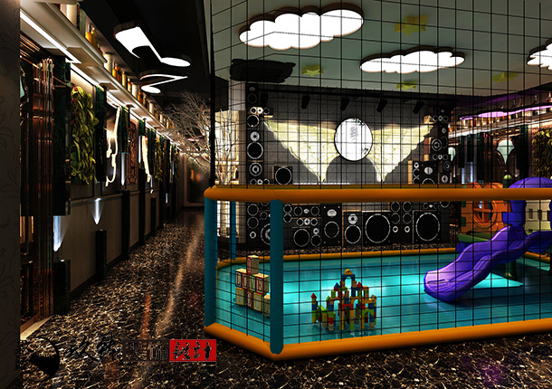 顧客在這種濃烈的氛圍之下一邊唱歌,一邊吃火鍋,真的是一種享受呢。所有的室內(nèi)設(shè)計(jì)最開始的初衷都是為了美觀的同時(shí)能更方便人們的體驗(yàn),在一樓的大廳還設(shè)計(jì)了一個(gè)小型的兒童設(shè)施,這樣更方便了一些帶小孩的顧客。