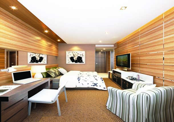 酒店式房間裝修技巧中,空間的巧妙利用方法是最為關(guān)鍵的一點(diǎn)。一般來說,大部分人都比較偏愛立體造型的居住環(huán)境,因?yàn)檫@樣的環(huán)境住起來比較不會(huì)有壓抑感,對人體的身心發(fā)展都有比較正面的引導(dǎo)作用。如果想達(dá)到這個(gè)效果,設(shè)計(jì)時(shí)就需要著重強(qiáng)調(diào)樓層的高度,建議可以通過吊柜協(xié)助創(chuàng)造充分的置物場所,又或者通過選購上下鋪的床來騰出使用空間,不僅可以讓房間富有個(gè)性,還能增加室內(nèi)環(huán)境的趣味性。