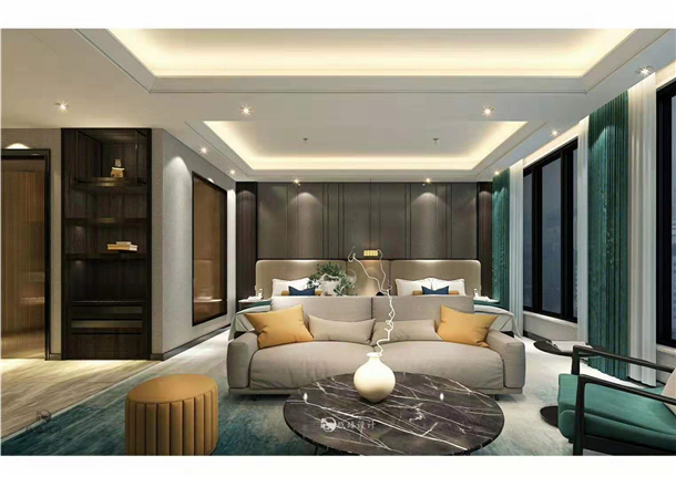 使用胡桃色木質(zhì)材料作為柜體的主打色,這種顏色給人一種沉穩(wěn),低調(diào),復(fù)古藝術(shù)的感覺,對于一些出差需要和客戶溝通的人士,該酒店是不二之選。將生活的空間進行細化,區(qū)域進行裝飾分化,客房內(nèi)的簡約,高雅格調(diào)以及具有新中式古典風(fēng)格的陳設(shè)營造了舒適的休閑空間。