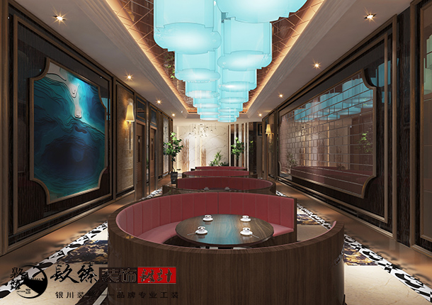 燒烤店包間的設(shè)計(jì)是為了給廣大客戶帶來(lái)更好的體驗(yàn),包間里更具隱秘性,到了周末,組織三五群人來(lái)一場(chǎng)吃喝盛宴實(shí)在是一種美好生活的享受。小編今天為大家?guī)?lái)的是璽云燒烤店的KTV包間裝修設(shè)計(jì)效果圖。本家店鋪是結(jié)合燒烤與KTV一體的音樂(lè)餐廳,無(wú)論是在餐飲還是娛樂(lè)上都是為了滿足客戶的需求,認(rèn)為在環(huán)境上需要襯托一種激昂的氣氛。在燒烤店包間的裝修設(shè)計(jì)中,銀川燒烤店裝修|銀川燒烤店裝修設(shè)計(jì)|镹臻裝飾小編覺(jué)得燈光的搭配是重點(diǎn)之一,娛樂(lè)場(chǎng)所的初衷在于給如何給客戶更好的心情,多彩絢麗的燈光可以使前來(lái)消費(fèi)的顧客更加放松,大家在看電視音樂(lè)節(jié)目的時(shí)候都會(huì)注意到一點(diǎn),舞臺(tái)的燈光經(jīng)常是非常絢麗柔和的,這樣的燈光會(huì)使臺(tái)上表演的歌手釋放的揮灑自如,那么KTV包間的設(shè)計(jì)也是這樣的道理。顧客來(lái)到這里希望邊用餐的同時(shí),以歌唱的形式發(fā)泄自己內(nèi)心的喧囂,灰暗的燈光更有包容性,非常符合包間的裝修設(shè)計(jì)。