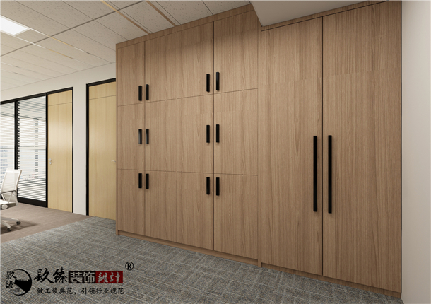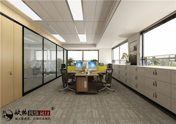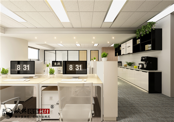 摒棄了一切繁文縟節(jié)的矯飾,一切盡在實(shí)用、明快而流暢的格局中;配合現(xiàn)代辦公環(huán)境的追求,設(shè)置實(shí)用與展示性相結(jié)合的半高書柜,旁倚商務(wù)型辦公桌,既陳設(shè)精雅、品味清亮、格調(diào)一致,又可于繁忙后賞窗外 風(fēng)光、待客會(huì)友;直接在原頂噴涂乳膠漆,凸顯了現(xiàn)代辦公的簡潔,利用不同的燈具劃分了辦公、會(huì)客區(qū)的燈光。