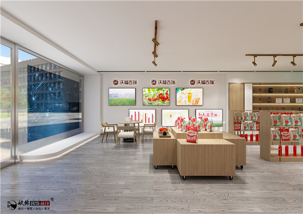 在本展館中設(shè)計(jì)師結(jié)合品牌發(fā)展歷程與發(fā)展理念,裝修色彩多以正紅色為主,原木色為點(diǎn)綴,展現(xiàn)出現(xiàn)代質(zhì)感與傳統(tǒng)理念并存的裝修風(fēng)格。頂面石膏板黑色線條封邊吊頂充分的延伸了整體空間視覺感,展館左側(cè)墻體地球的圖案寓意著寧夏的枸杞品牌走出了中國(guó),邁向了世界。