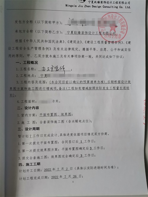 恭喜銀川寧陽廣場餐飲公司辦公裝修設計簽約镹臻裝飾|銀川裝修公司推薦 |